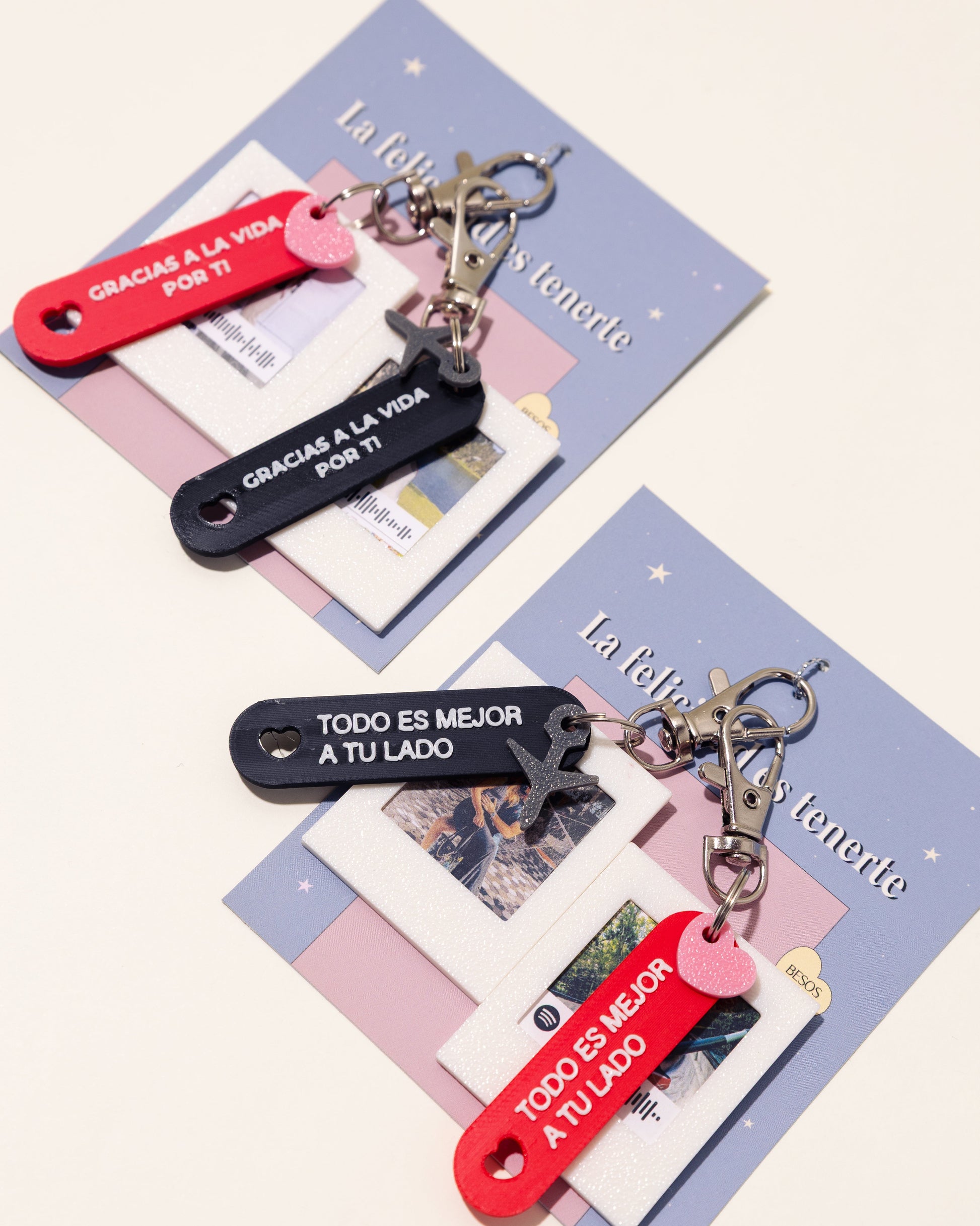 Lleva a tu persona favorita siempre contigo con nuestros Amuletos de Recuerdos, ideales para hacer match con tu persona favorita, ya sea tu pareja, amigo o familiar. Cada llavero se convierte en un amuleto lleno de significado, permitiéndote llevar un pedazo de amor y conexión a donde vayas. Personaliza cada uno con una foto especial, y haz de este detalle un regalo único y lleno de emociones. ¡Un gesto perfecto para celebrar la relación especial que compartes!