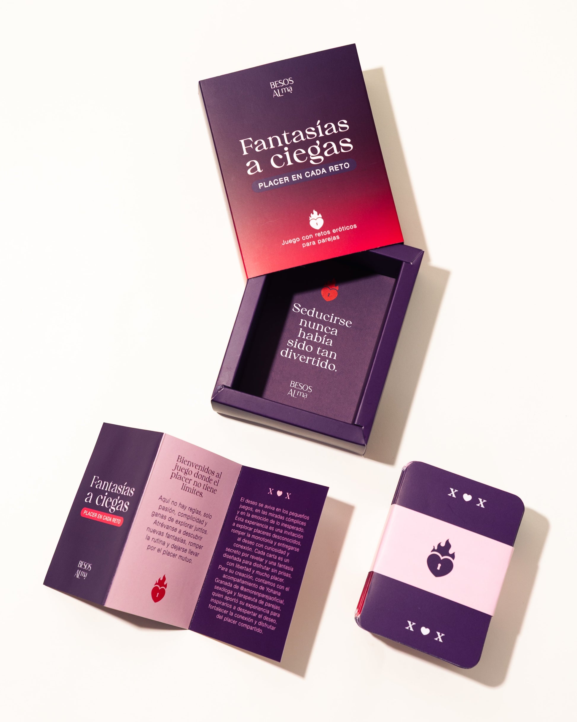 Fantasías a Ciegas es un juego erótico con 45 cartas llenas de fantasías y retos diseñados para salir de la rutina, encender el deseo y vivir experiencias íntimas completamente nuevas con tu pareja.