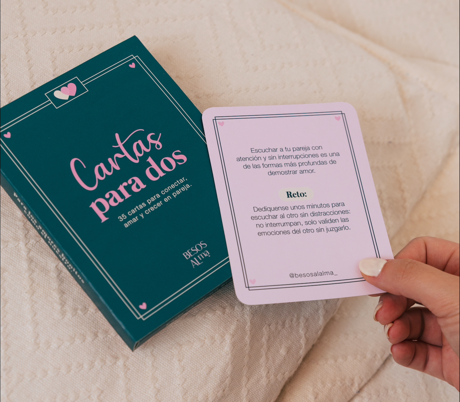 Cartas para dos, un ritual de 35 cartas con frases y retos inspirados en los cinco lenguajes del amor, perfectos para fortalecer la relación y conectar mucho más.