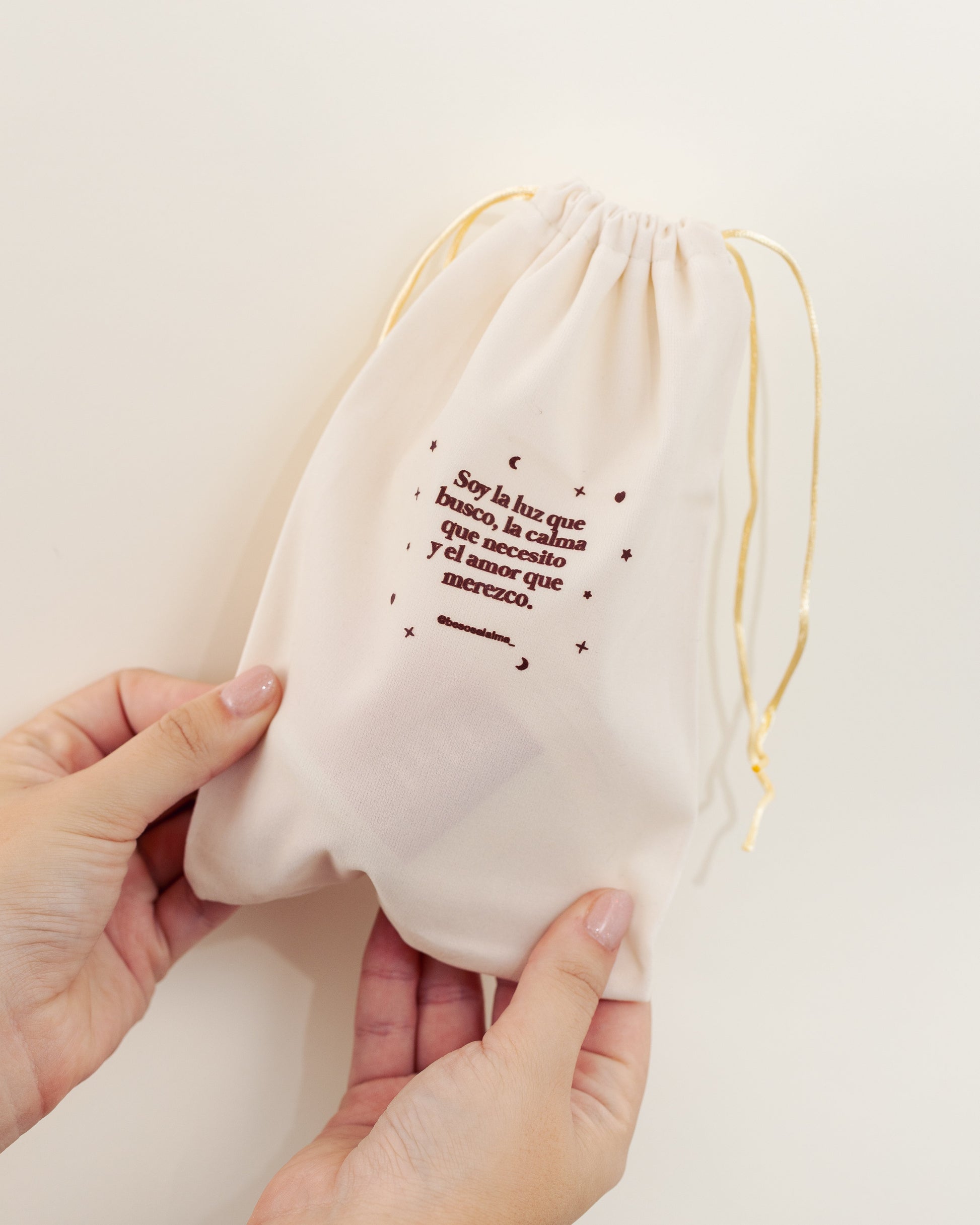 Vienen en una bolsa de tela, perfecta para regalar o guardar tus detalles favoritos.