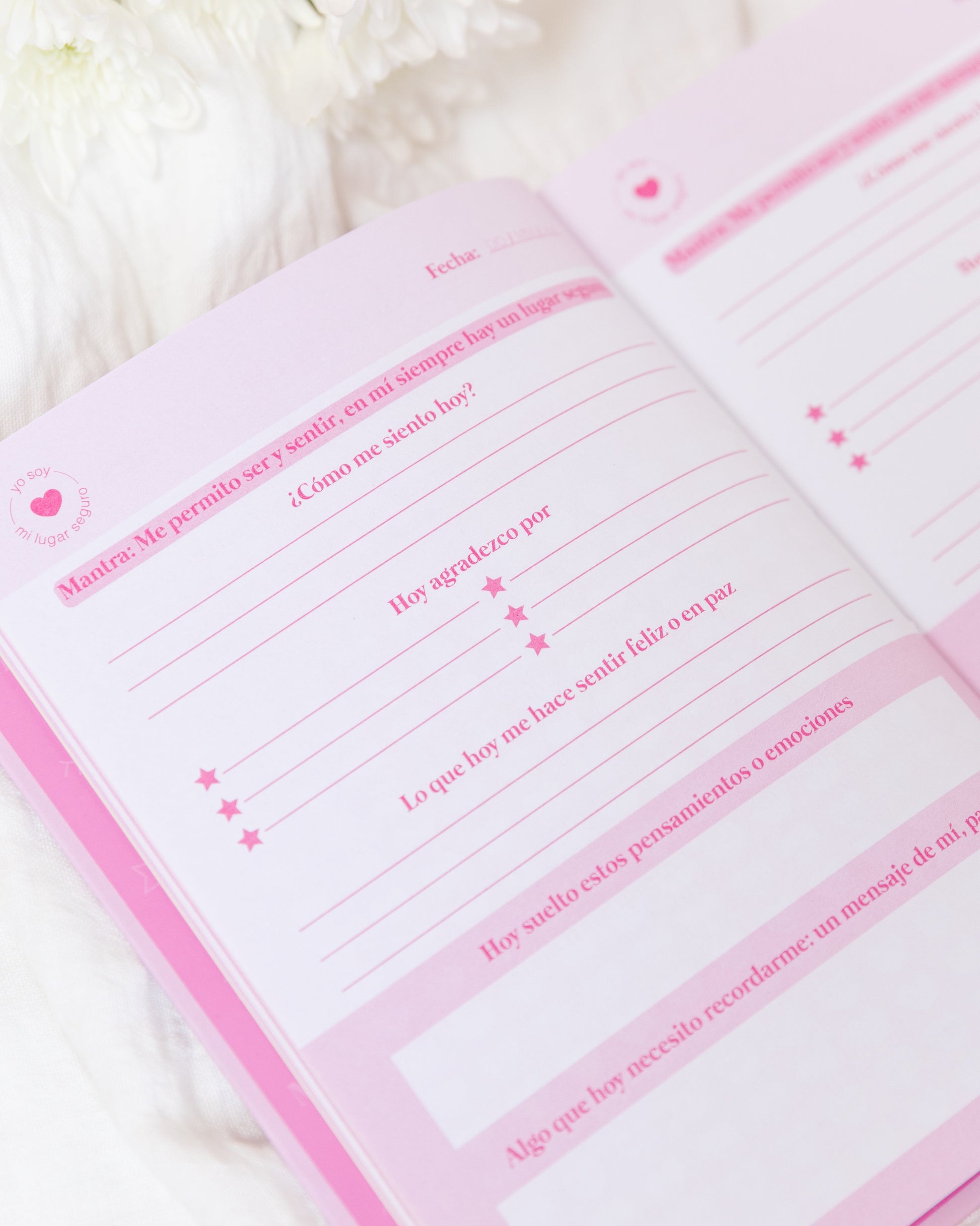 Es es una herramienta de autocuidado emocional, creada para ayudarte a conectar contigo misma desde la escritura consciente. Es ese momento del día donde puedes respirar profundo, soltar lo que pesa, agradecer lo que tienes, reconocer lo que sientes y abrazarte con palabras.