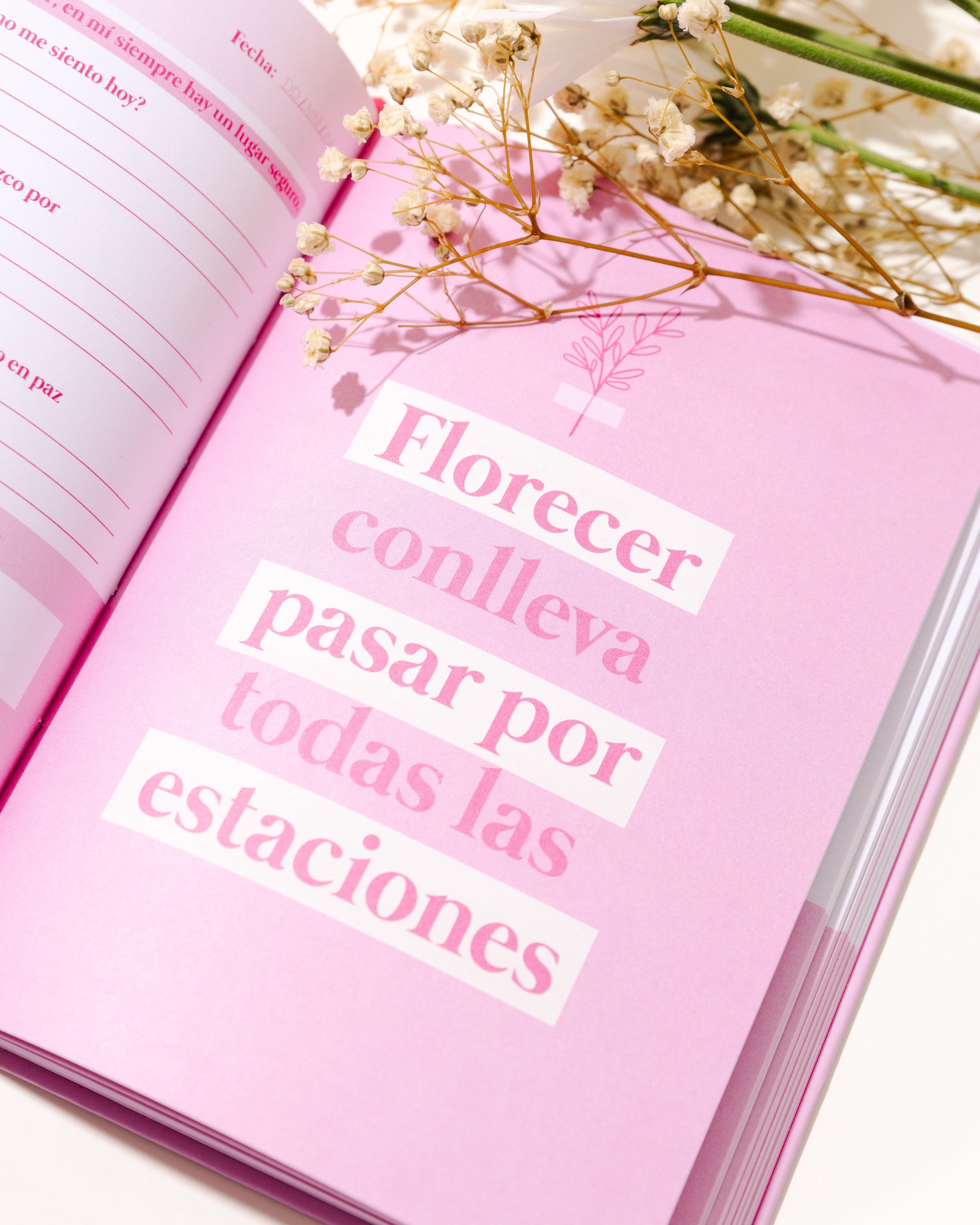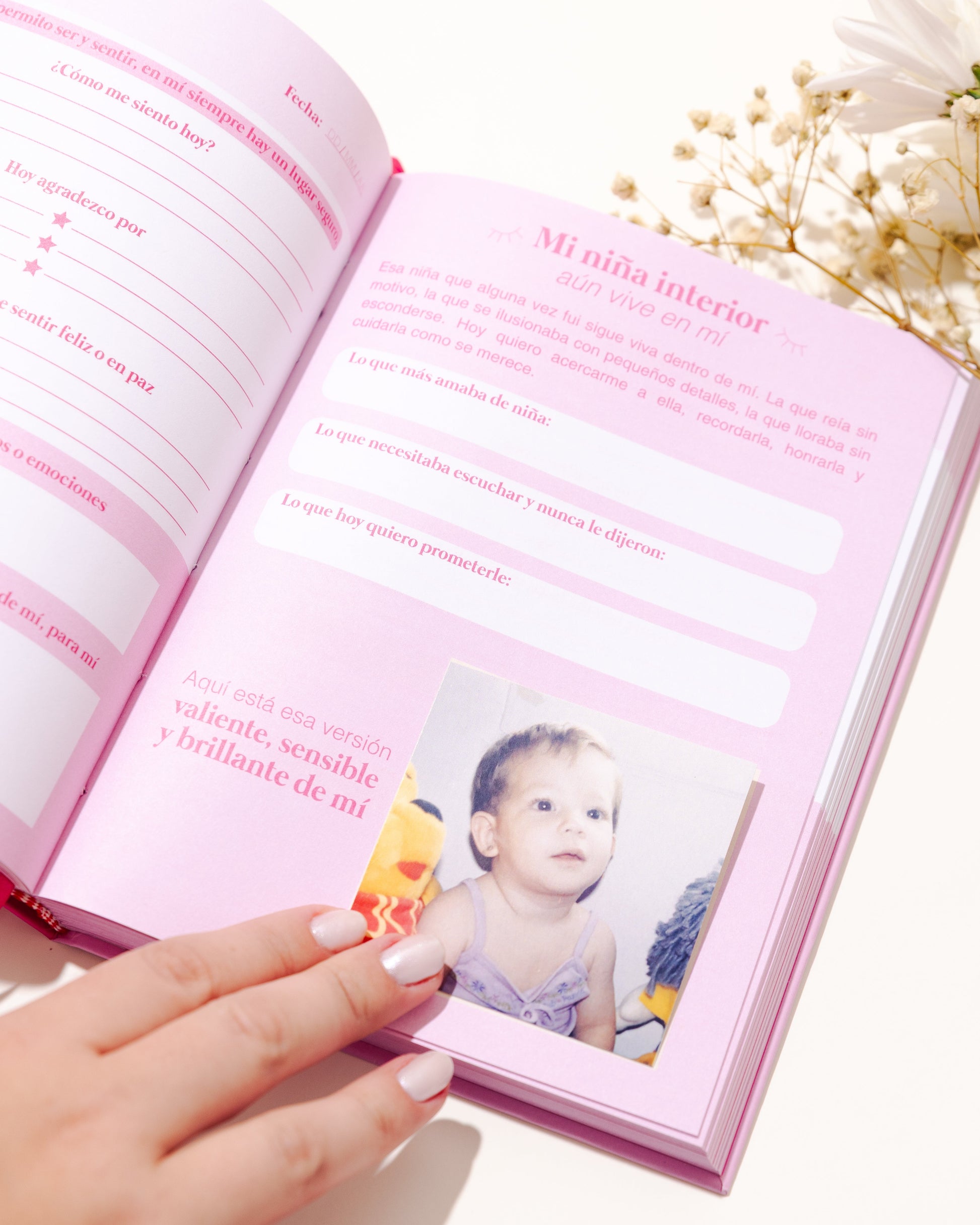 Este es un journal diseñado para mujeres que buscan un espacio íntimo donde puedan escucharse, acompañarse y volver a sí mismas cada día.